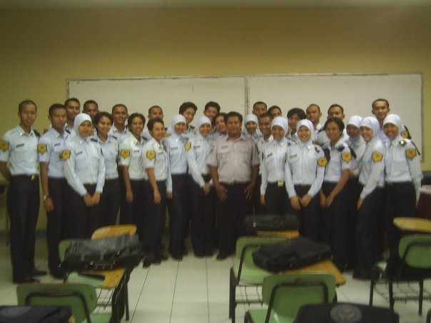 Afin: Awalnya gak sengaja (ah, sering banget gw denger kayak gini). Sepupu gw dulu sekolah di Sekolah Tinggi Penerbangan Curug, dia nyaranin gw ke sana karena sekolah kedinasan beban biayanya lebih ringan. Selain itu ortu lebih tenang karena susah bandelnya di sana (Oooh, jadi Afin ini bandel…hmmm). Sepupu juga yang menganjurkan mengambil jurusan ALLU (Ahli Lalu Lintas Udara)