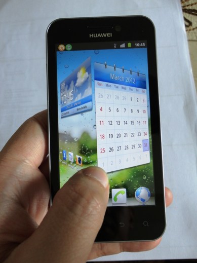 OK, mari kita nyalain si Honor sekarang. (Apesnya, belom ada fungsi screen capture built in, dan kebanyakan app di Google Market belom compatible dengan Honor, jadi terpaksa gw foto pake kamera deh.) Kayak gw bilang, displaynya cukup besar, lebih besar dari iPhone atau Lumia 800. Tetapi ada faktor resolusi, warna, dll. Honor displaynya ya cukup bagus dan tajam, tapi emang kayaknya tidak sebagus Galaxy SII atau iPhone sih. (ingeeet, hargaaaaa…..)