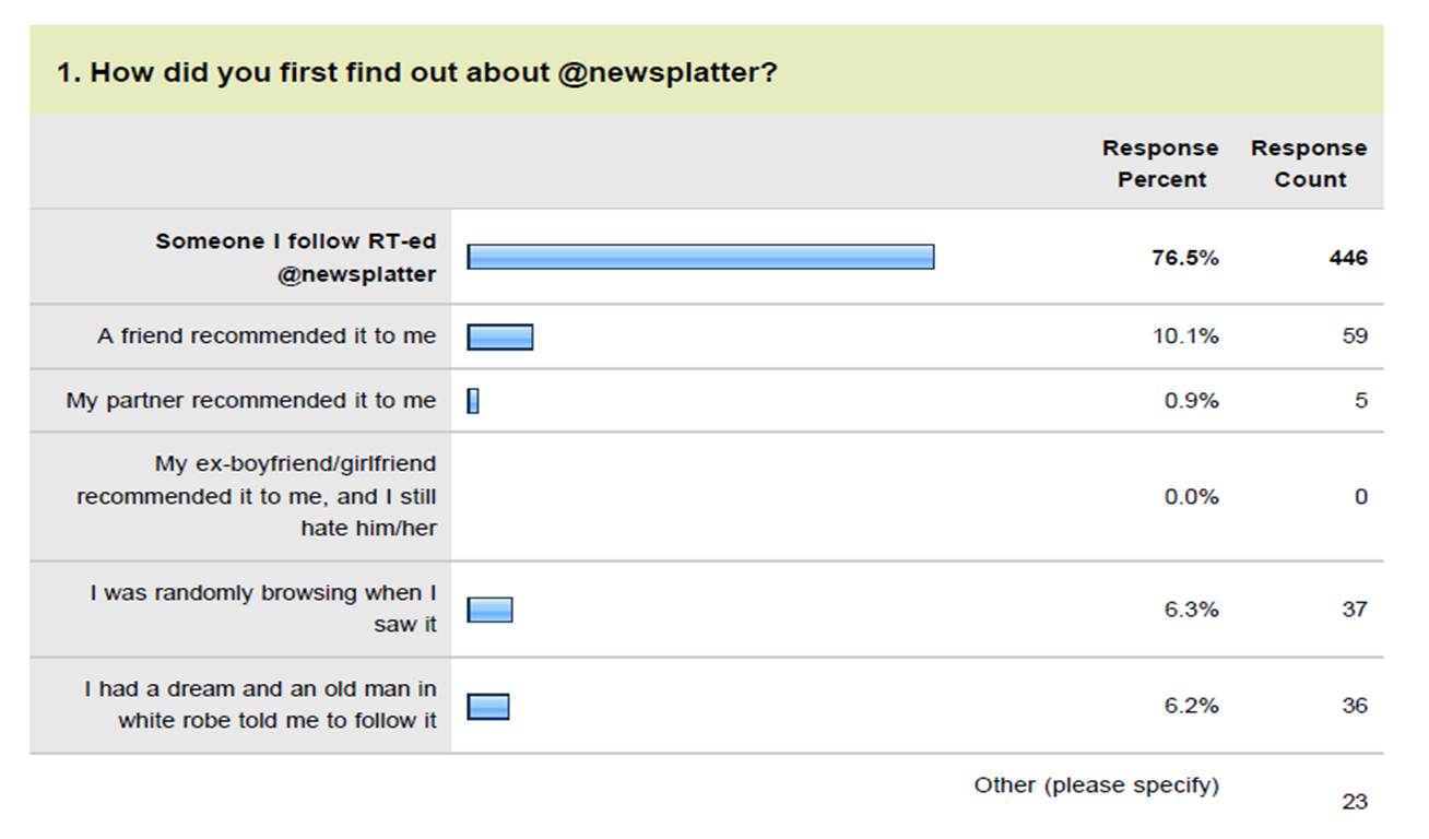 Pertanyaan 1: How did you first find out about @newsplatter