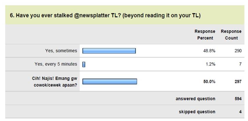Pertanyaan 6: Have you ever stalked @newsplatter TL?