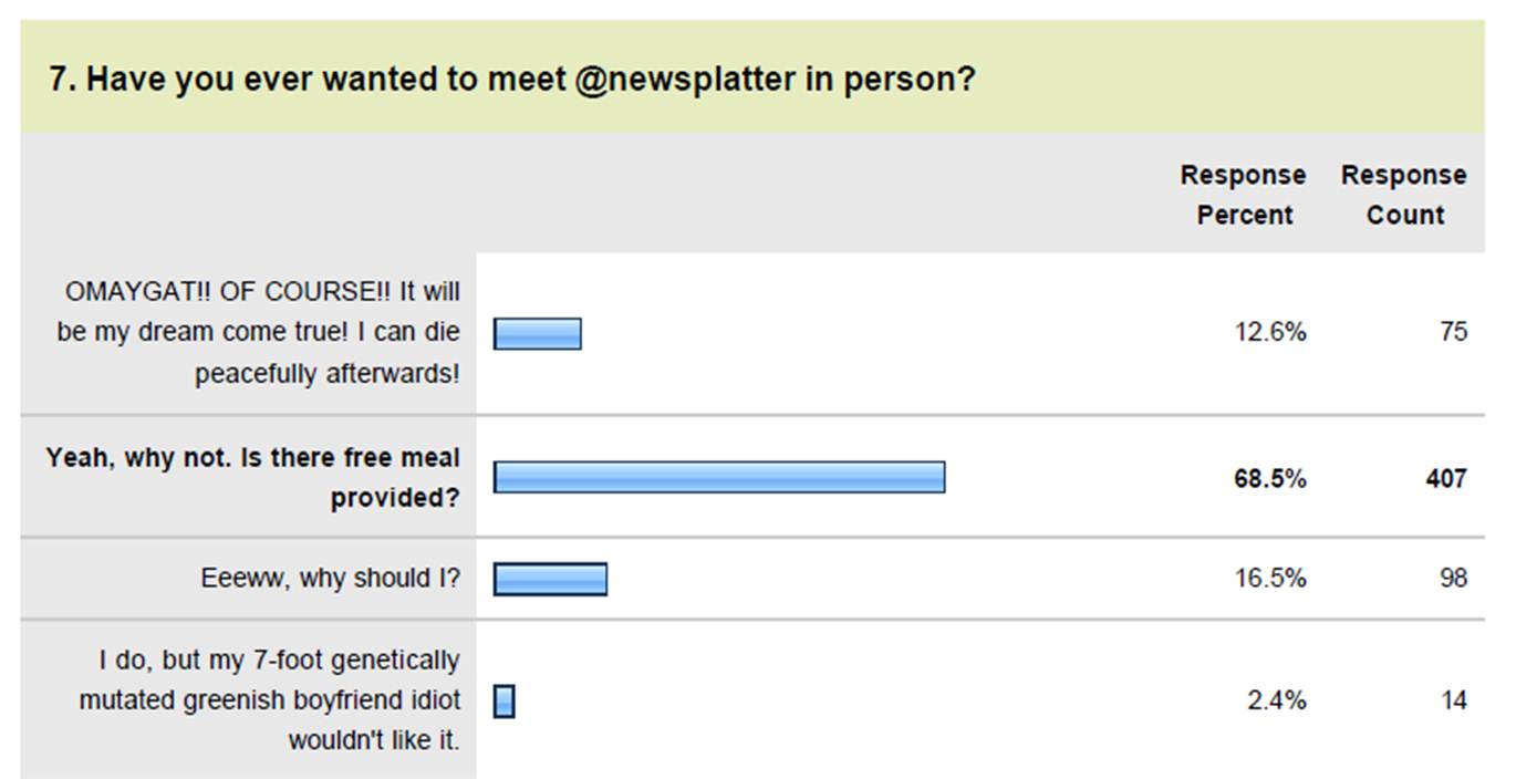 Pertanyaan 7: Have you ever wanted to meet @newsplatter in person?