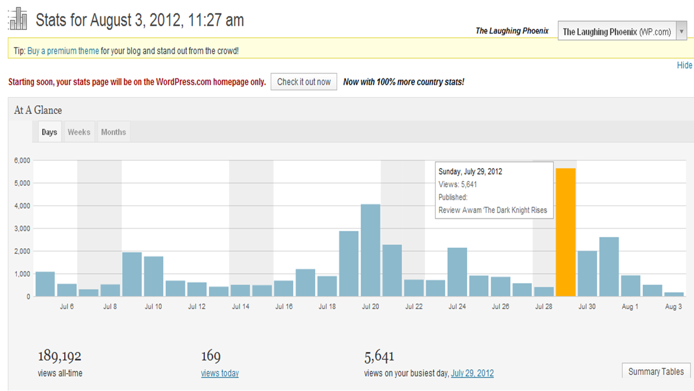 It is amazing that from a simple movie review came out such a strong reaction. Both in agreement and disagreement. Not only that, my review on TDKR broke personal record on blog views. The day the review was posted saw my blog receive more than 5,600 views – never achieved before. Of course, I would attribute it to @deelestari RT-ing my blog link.