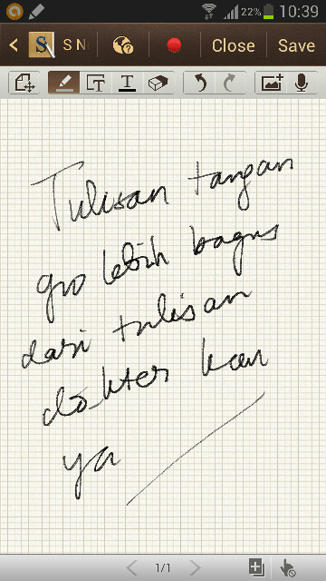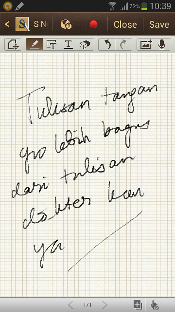 Tapi kalo ukuran fisik bukan menjadi kendala, maka Note 2 bener2 hampir gak ada kelemahannya buat gw, apalagi kalo sudah biasa dengan Android OS. Prosesor kenceng, memory besar, disupport dengan OS (hampir) terbaru Jellybean dan batre besar membuat kinerja lancar jaya. Selain itu, kehadiran stylus, eh S Pen, ini bener2 fitur yang penting – untuk SEBAGIAN ORANG. Untuk mereka yang seneng bisa menulis tangan (handwriting) dengan gadgetnya, dan senang menggambar/sketsa, maka Note 2 barulah bener2 optimal. Rasanya sayang memakai Note 2 kalo stylus-nya dianggurin. Tapi ya ga papa juga sik.