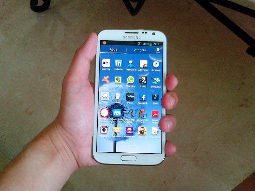 Dengan ukuran layar 5.5 inchi, percayalah bahwa Note 2 ini beneran gede. Kalo tahun lalu Note 1 membuat cewek2 pingsan begitu ngeliat ukurannya (well..cowok2 juga sih), Note 2 digedein lagi sedikit. Kalo semua smartphones diibaratkan sebagai mobil, inilah Alphardnya smartphone. Makanya ada sebutan “phablet” buat Note 2, singkatan dari “phone tablet”, karena ukurannya yg di tengah2 smartphone dan tablet.