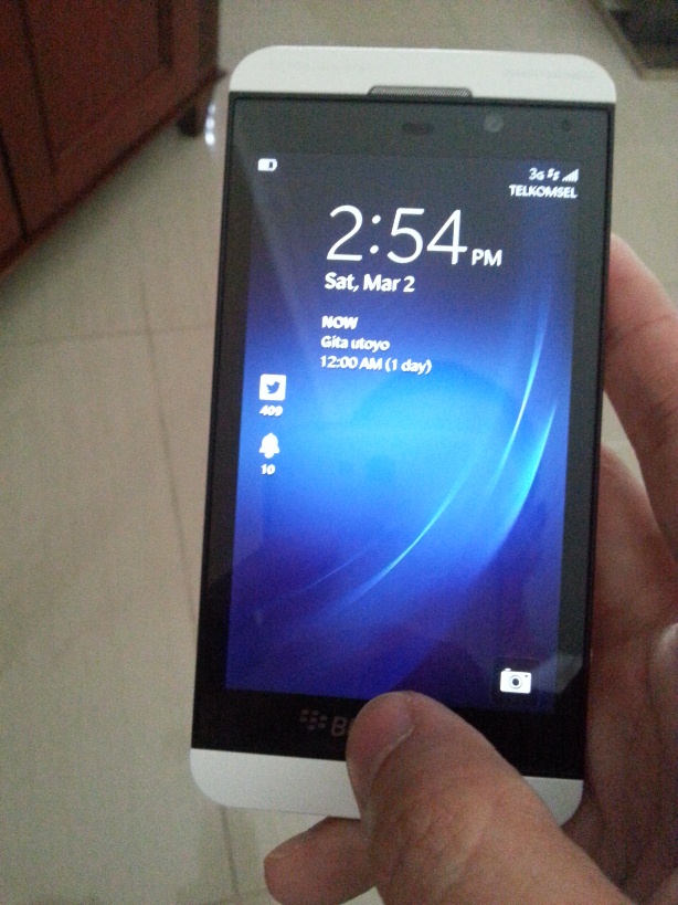 Akhirnya, BlackBerry Z10 tiba, dan gw berkesempatan mencobanya sebelum resmi ada di pasaran. Yay! Dan sekarang gw akan berbagi review awam gw, seperti biasa. Mengapa gw selalu menggunakan istilah “awam”? Ya karena emang gw beneran hanya pengguna awam, yang tidak terlalu mengerti teknis. Jadi review gw ya sebatas pengguna umum saja. Jika pembaca merasa butuh review yang sampai teknis, misalnya membahas hardware dan teknologi yang digunakan secara mendetail, bisa membaca review oleh CNet, atau Techcrunch, misalnya. Selain itu, gw hanya membahas poin2 penting saja yang gw anggap menarik, dan tidak keseluruhan fitur/kemampuan Z10 yang ada.