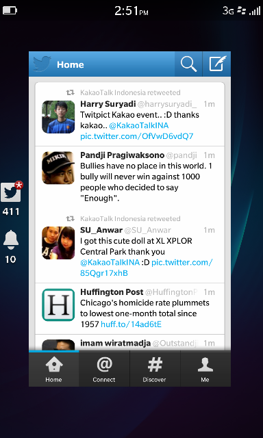 Masalah aplikasi. Nah, aplikasi memang bisa menjadi kelemahan BB10 saat ini. Walaupun pihak BlackBerry mengklaim telah memiliki 70 ribu lebih aplikasi di BlackBerry World (sejenis Android Play Store), dan sudah ada game2 menarik (Angry Bird Star Wars, Asphalt, Where’s My Water, dll) tetapi masih banyak aplikasi populer lain yang belum ada. Whatsapp, Path belum bisa ditemukan di BB10. Twitter client sangat terbatas, walaupun Twitter for BB10 lumayan lah (gw gak pernah suka app asli Twitter dari dulu). Instagram konon tidak akan hadir di BB10 (selamat tinggal deh Cetar Membahana Tante Planetarium…) Bagi penyuka aplikasi yang beragam di Android dan iOS, pasti akan merasa pilihan aplikasi yang ada sangat terbatas.