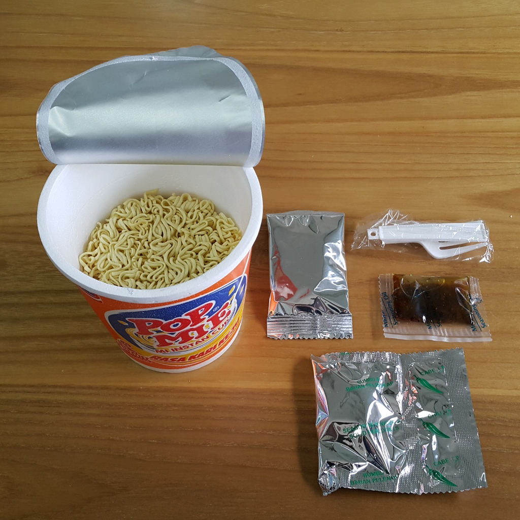 Sekarang, lanjut dengan unboxing Pop Mie Kari Susu.